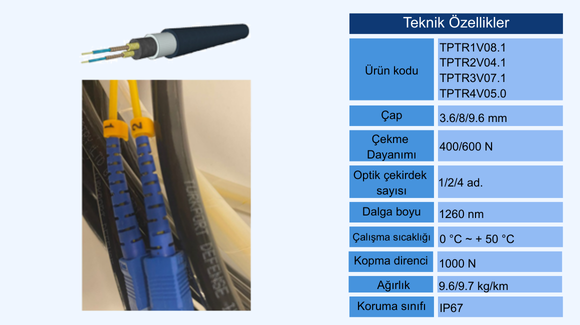 Yere bağlı sistemlerde ürünün tüm sistem verileri elektronik harp ve dinleme riskinden korunmak zorunda olduğu için hava aracını yere bağlayan iplerdin birisinin içine fiber optik sistemler eklenerek hem veri güvenliği sağlanmış hem de veri hızı artırılmıştır. Bu sistemin döner yapılara akuple edilmesi için kullanılan alt sistemlerle birlikte sistem komplesi fiber optik ip ailesi olarak konumlandırılmıştır. Fiber kıllar için 1 adetten başlayarak 4 ayrı kıla kadar değiştirilebilir ve yedeklenebilir bir fiber optik ip ailesi yerlileştirilmiştir.