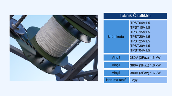 Yere bağlı hava araçlarının fiber optik gömülmüş veya standart iplerini saran, toplayan ve yöneten vinç sistemleridir. 400 N alt seviyesinden 45 kN seviyesine kadar değişik kalınlıklardaki ipler için var-gel tasarım ve modellemeleri dahil, sarıcı motor, redüktör tasarımı ve sistemin komple imalatı firmamız tarafından yapılarak sistemlere akuple edilmektedir. Her bir sarıcı sistemin, hız, moment, gergi yönetimi, sarım yönetimi gibi tüm alt sistemlerinin tasarım ve imalat kontrolleri Türkport mühendisleri tarafından yapılmaktadır.