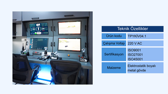 Özellikle insansız hava araçlarının uçuş, veri, pozisyon kontrol ve yönetimlerini sağlayan ergonomik yapıya uygun, çift ekran modülasyonu firmamız tarafından tasarlanmış üründür. Ürünün kendisi ve iç komponentleri ISO 9001, ISO 27001, ISO 45001 kalite belgeleri kapsamında doğrulanmış, AS 9100 kalite belgesi ve IPC-JTD-001, IPC/7711, IPC /WMHA-620, IPC /A-620, IPC /A-600 montaj ve lehimleme standartları alınmış özel imalat sistemleridir.