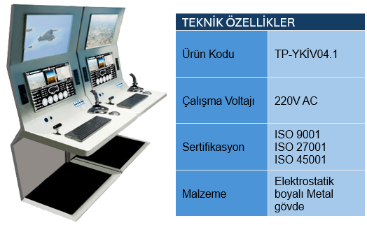 Özellikle insansız hava araçlarının uçuş, veri, pozisyon kontrol ve yönetimlerini sağlayan ergonomik yapıya uygun, çift ekran modülasyonu firmamız tarafından tasarlanmış üründür. Ürünün kendisi ve iç komponentleri ISO 9001, ISO 27001, ISO 45001 kalite belgeleri kapsamında doğrulanmış, AS 9100 kalite belgesi ve IPC-JTD-001, IPC/7711, IPC /WMHA-620, IPC /A-620, IPC /A-600 montaj ve lehimleme standartları alınmış özel imalat sistemleridir.